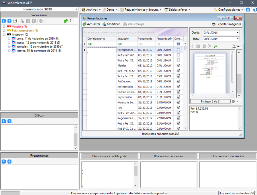Sistema de control de vencimientos AFIP. Calcula automáticamente los días en que vencen los impuestos a los que está inscripto cada contribuyente.