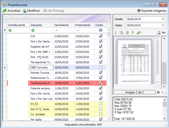 - Generación automática de vencimientos impositivos.