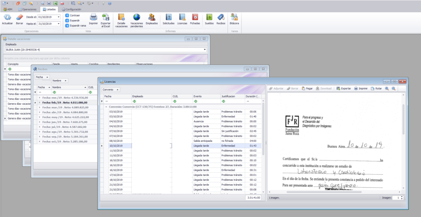 Sistema desarrollado para gestionar datos sobre liquidación de sueldos y jornales, así como licencias y otros temas de RRHH.